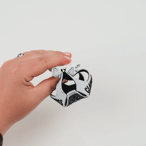 Because Clawgs V3s open completely, people can wrap Clawgs V3's heel straps around paws and fasten the buckle without even lifting a paw.