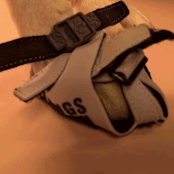 The most common reason why dogs feel uncomfortable in Clawgs is the side straps are too tight.