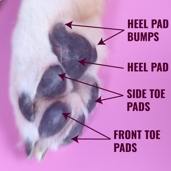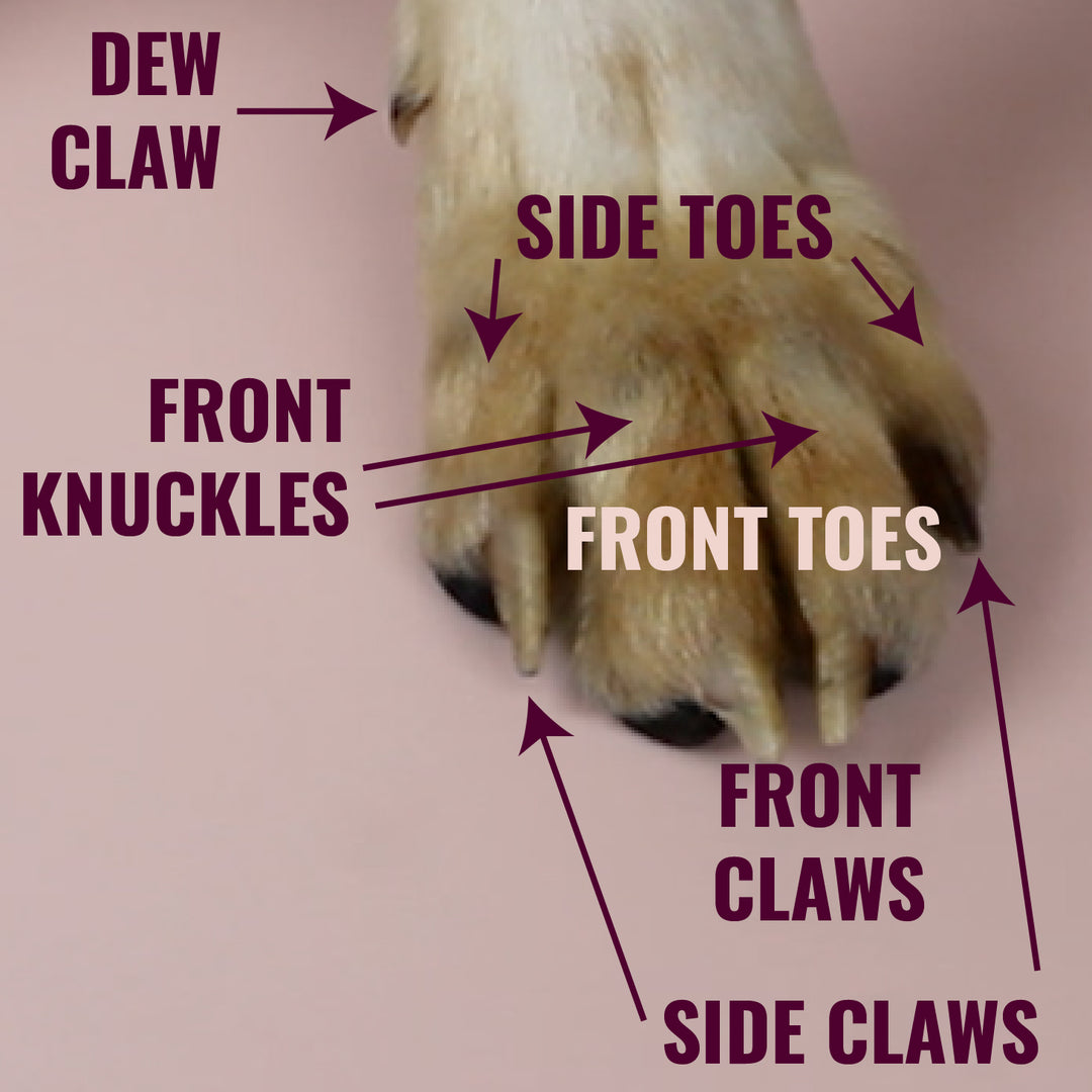Toes spread when dogs stand. If you're fastening the side straps on a lying down dog or lifted paw, loosely fasten the side straps to account for standing toe spread.