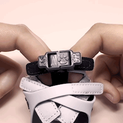 After fastening the buckle and fully tightening the heel straps around paws for the first time, immediately unfasten the buckle and remove the Clawgs from paws.