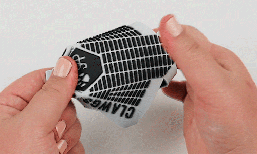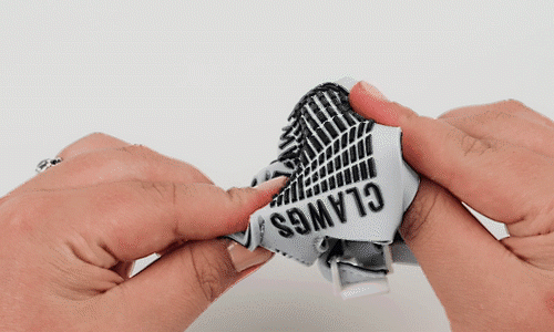 Clawgs V2 opens down the middle with our custom buckle. Clawgs open wide to make putting on and removing Clawgs simple. Most would agree that Clawgs V2 is easier to put on than shoving paws into small openings.