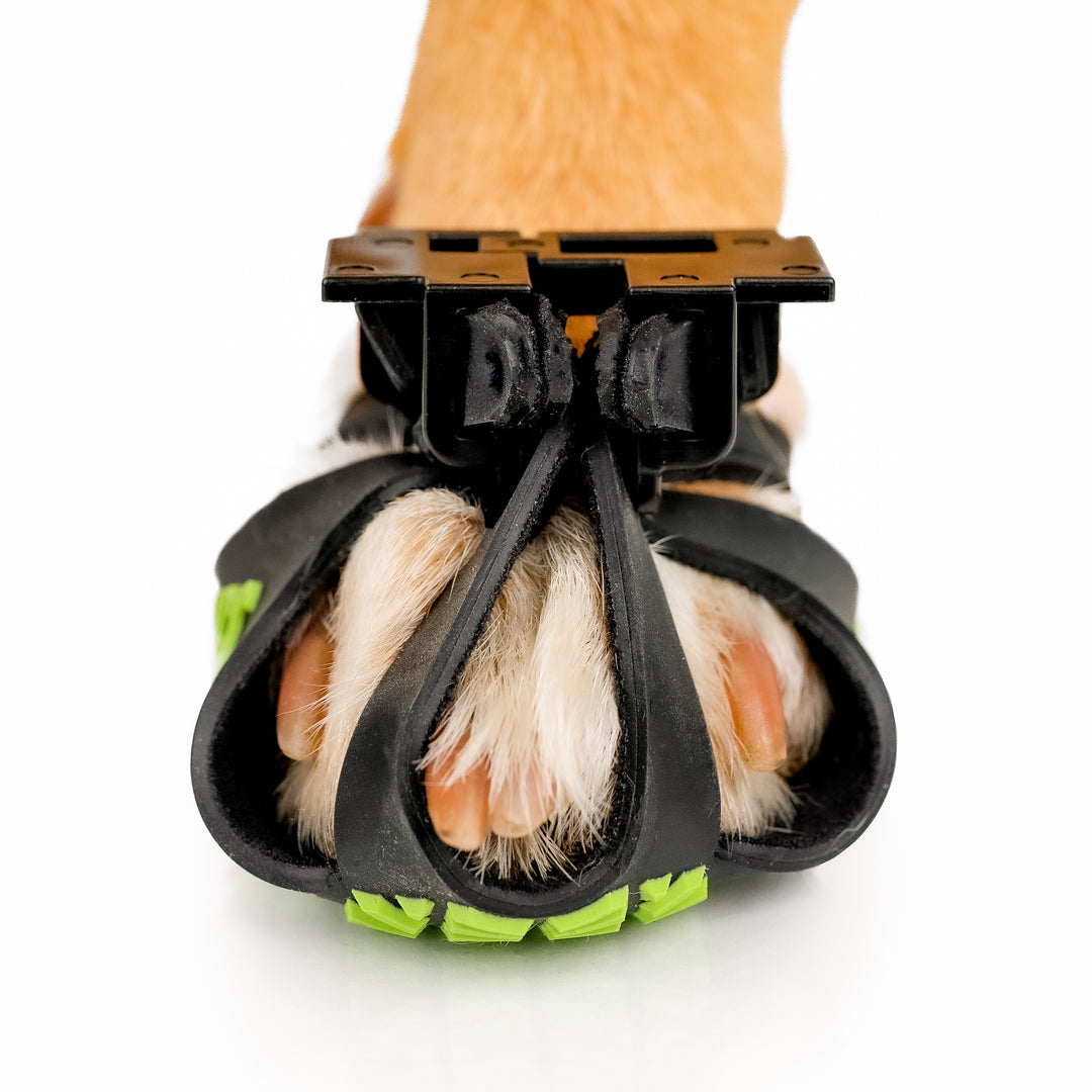 Each Clawg has two heel straps and four toe straps. That way, Clawgs are completely customizable to properly fit dogs' unique paws.