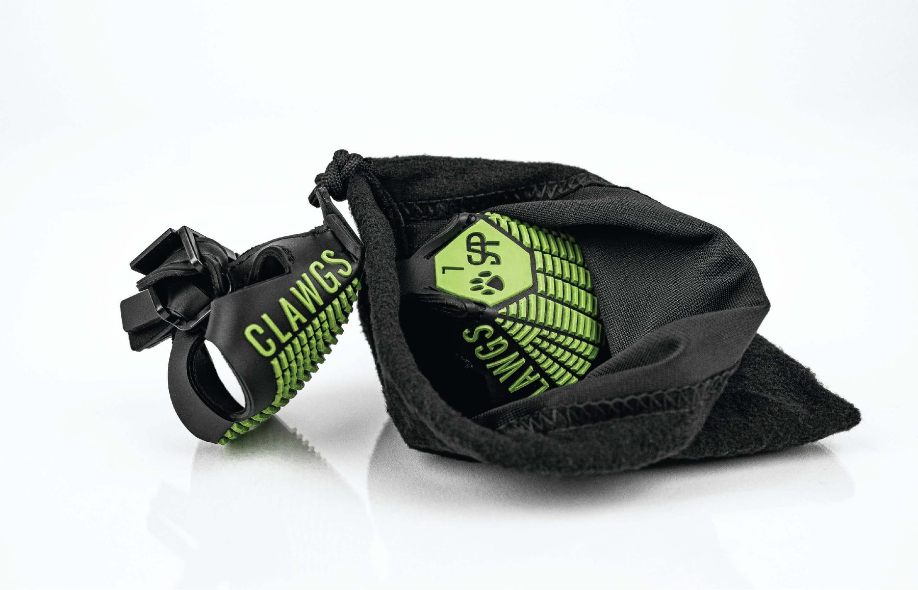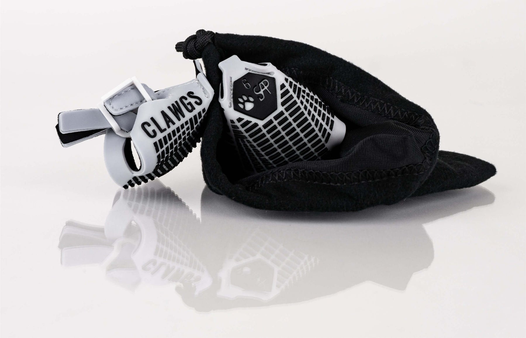 Clawgs lets claws through openings and hold securely onto toes. Don't let your dogs' claws ram against the front of traditional dog boots and be pressed downwards, the opposite direction they press earth.