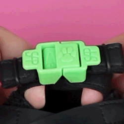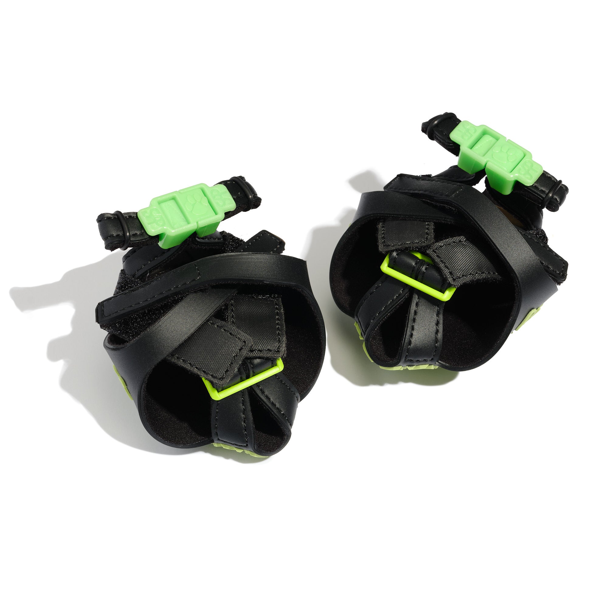 - Buckles' cinch slots secure heel straps to reliably stay on paws and repeatedly attach to same tightness.