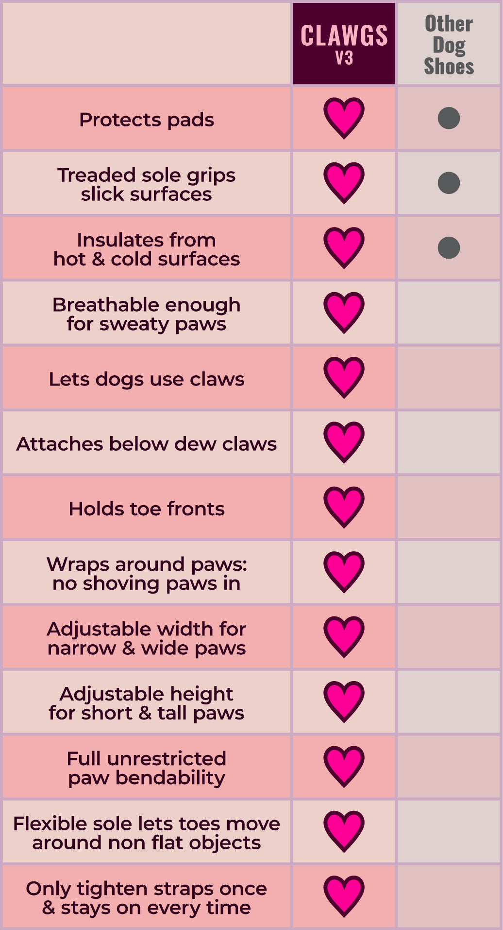 - Eight adjustment points per Clawg ensures proper fit for each unique paw.